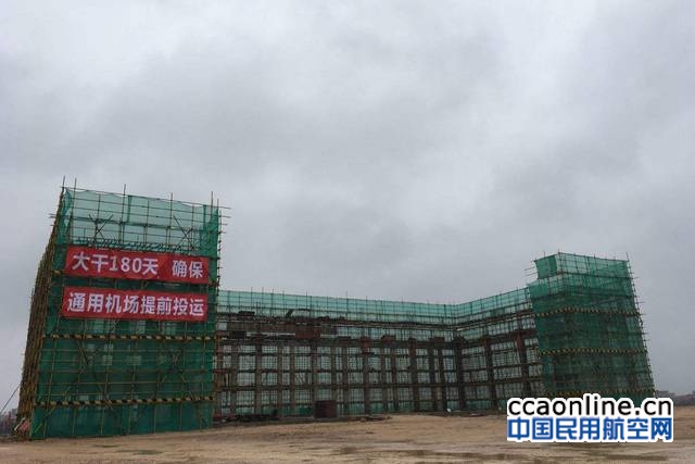 通用机场机场一期建设总投资额为7.6亿元,建设包含一条900米×30米的跑道,一条168米×10.5米的垂直联络道,及一个183.5×149.25米的机坪,按停放8个B类机位和3个直升机位布置。导航区的综合业务楼、停机库等附属用房设施,目前也在抓紧建设中。