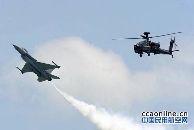F15SG型战斗机,配合两架F16战斗机,机身大小、性能不同,要进行联合特技演出并不容易。