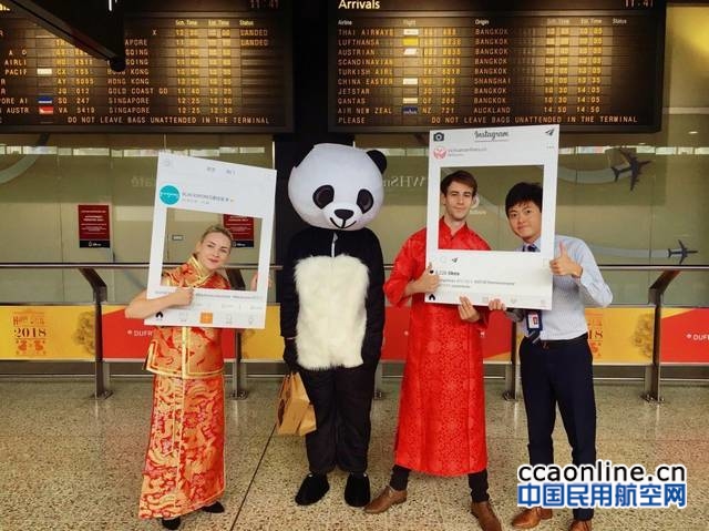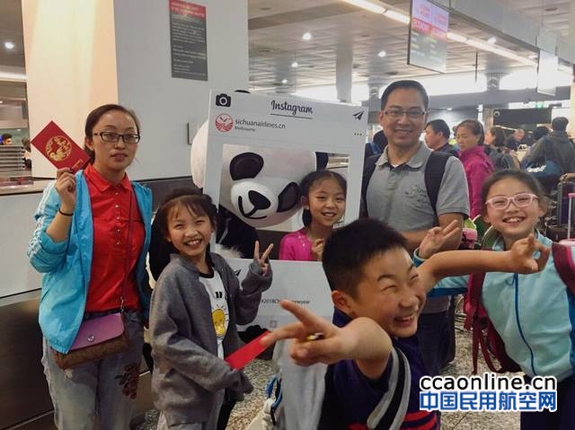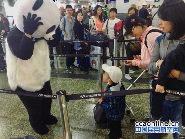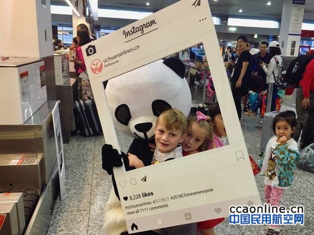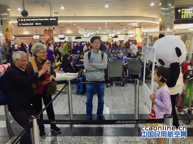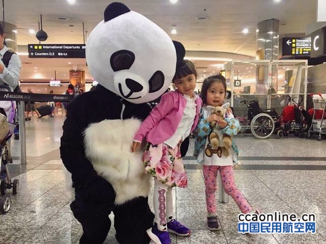 中国民用航空网通讯员姜文峰、高昂讯:“Look! Panda!”2月17日晚,四川航空3U602墨尔本-成都航班值机现场,一只憨态可掬的“熊猫”引来了旅客们的阵阵赞叹!原来,这是川航2018新春系列特色活动之一,川航墨尔本航站与机组成员们,特别为旅客们打造了新禧熊猫主题服务航班,送上新年祝福,携手“熊猫人”给旅客们拜年。
