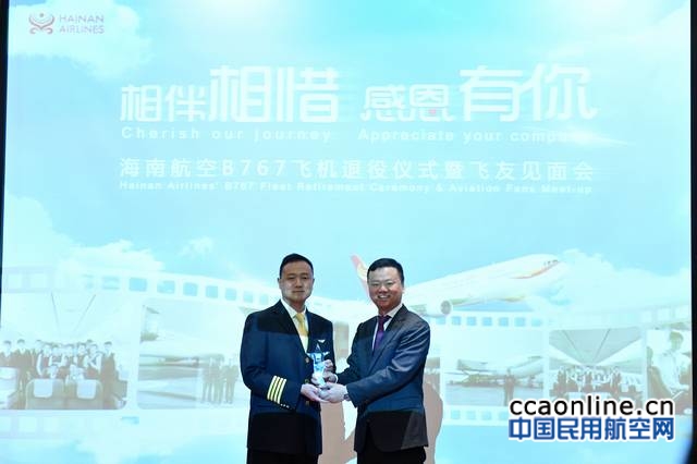 当天上午十点,海南航空副总裁余超杰、飞行部总经理阎波、767机队飞行员及众多飞友齐聚海南航空北京基地参加了波音767退役仪式。退役仪式上,大家纷纷分享自己与海南航空波音767的故事,表达对这位“老伙计”的不舍与祝福。