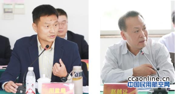 在座谈讨论环节,与会领导讲问题,说举措,谈发展,气氛热烈。适航审定司司长徐超群、飞行标准司副司长吕新明、适航审定中心主任沈小明、西南管理局副局长吴小兵、民航四川监管局副局长孙文胜、中国商飞公司总经理赵越让、航空工业集团副总经理陈元先分别发言。成都航空公司总经理查光忆对ARJ21飞行员改装、机组配套、下一步航线计划作汇报交流。