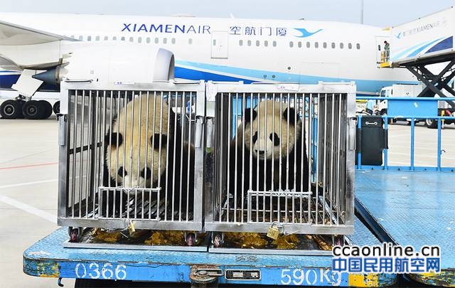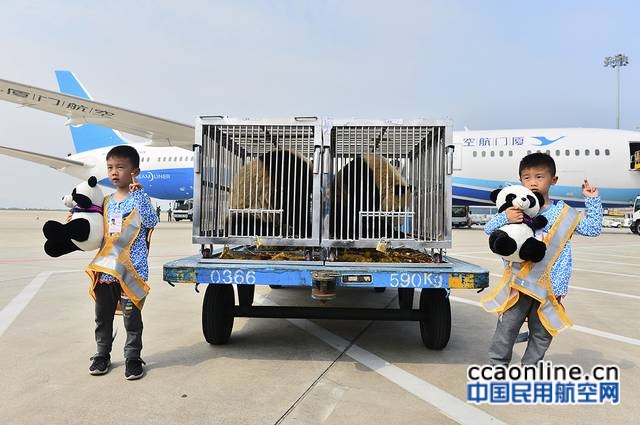 中国民用航空网通讯员通讯员江观明、贺晟讯:4月26日14时20分,厦航MF8402(成都-厦门)航班平稳落地该航班因为有着两位特殊“客人”而备受瞩目——来自成都大熊猫繁育研究基地的双胞胎大熊猫“思念”和“思筠筠”。经历2个多小时的飞行,它们顺利来到鹭岛,并将落户厦门灵玲动物王国大熊猫馆,与厦门市民及游客们见面。