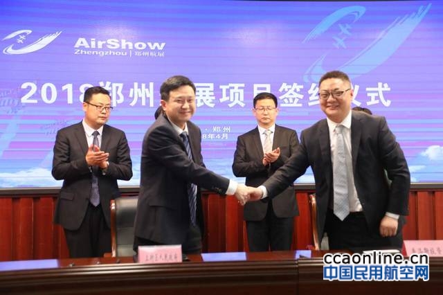 中国民用航空网讯:4月27日下午,2018郑州航展项目签约仪式在上街区政府会议中心四楼视频会议室举行。郑州市政府副市长万正峰、郑州市政府副秘书长李兵出席会议,会议由上街区人民政府区长耿勇军主持。