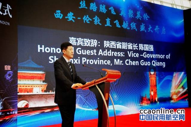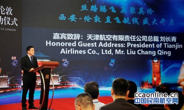 中国民用航空网通讯员李佳音、鱼娇讯:昨日(5月7日),随着天津航空GS7987航班从西安咸阳国际机场起飞,天津航空执飞的西安首条飞往伦敦的航线正式开通。陕西省副省长陈国强、陕西省副秘书长王晓驰、西安市副市长强晓安、西咸新区空港新城管委会主任贺键、西安咸阳国际机场有限公司总经理张文革、海航航空旅游集团副董事长兼运营总裁包启发、天津航空总裁刘长青等众多嘉宾和媒体记者出席了首航活动,共同见证这条“空中丝路”航班顺利起航。据悉,该航线是继2016年6月天津=重庆=伦敦航线后,天津航空开通的第二条内地飞往英国的航线。天津=西安=伦敦航线将打通中国西北区域连接欧亚大陆的空中通道,是天津航空用实际行动对国家“一带一路”倡议的呼应与支持。陈国强副省长表示,“西安=伦敦航线的开通,又一次在古丝绸之路之上架起了一座新的空中桥梁,将进一步促进双方经济、贸易、金融、文化等领域的互联互通,为实现西安与伦敦两地乃至中国与英国的经贸、旅游、文化交流奠定更加坚强的基础,希望大家共同努力、运营好这条航线,造福两地人民、服务两地发展,我们期待更多的国际航线在我省开通,为我省打造国际运输走廊和国际航空枢纽、发展‘三个经济’做出更大的贡献,相信西安=伦敦航线会越飞越好!”。