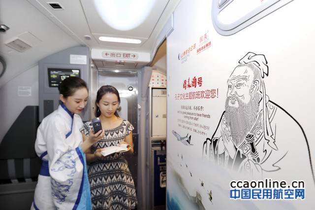 中国民用航空网通讯员白新宇、骈其强讯:6月6日下午16:05,全球首架孔子文化主题飞机执行首个山航航班SC1171,由济南遥墙国际机场起飞前往广州,为机上旅客开启了一段中华传统文化之旅。