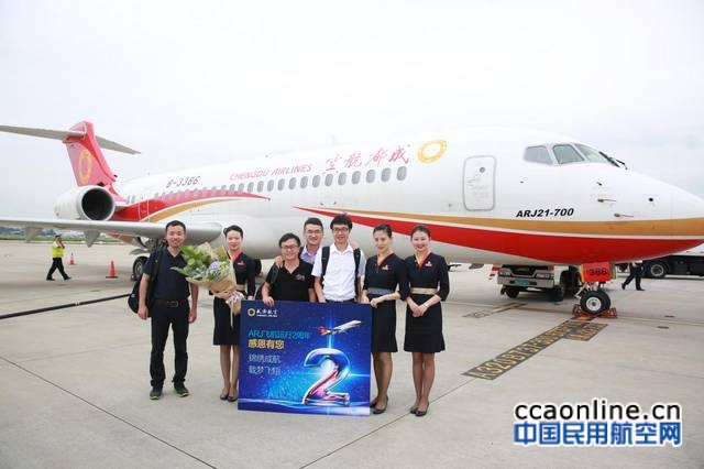 截至目前,成都航空共接收ARJ21飞机5架,培训培养ARJ21机长28名、航务人员17名、维修人员85名、获取资质的乘务员84名,先后开通成都—长沙—虹桥、成都—合肥—温州、成都—上饶—南通等8条航线,机队安全飞行3600余小时,安全载客量突破10万人次。