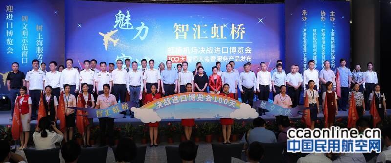 中国民用航空网讯:7月26日,上海虹桥国际机场(以下简称“虹桥机场”)举办“智汇虹桥·魅力空港”决战进口博览会100天誓师大会暨服务产品发布会。虹桥机场、各航空公司、海关边检等窗口服务单位代表共同宣誓,将以最饱满的热情和最真挚的服务,积极投入到进口博览会各项航空服务保障,精益求精,用细节展现上海追求卓越的特殊品质和城市形象。市文明办、虹桥商务区管委会、民航华东管理局、民航华东空管局、上海机场集团、各航空公司、海关边检、程家桥街道、新虹街道等相关政府部门、社区街道、企事业单位负责人出席了活动。