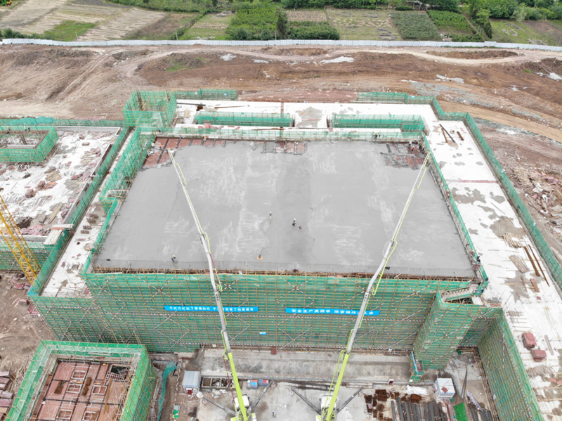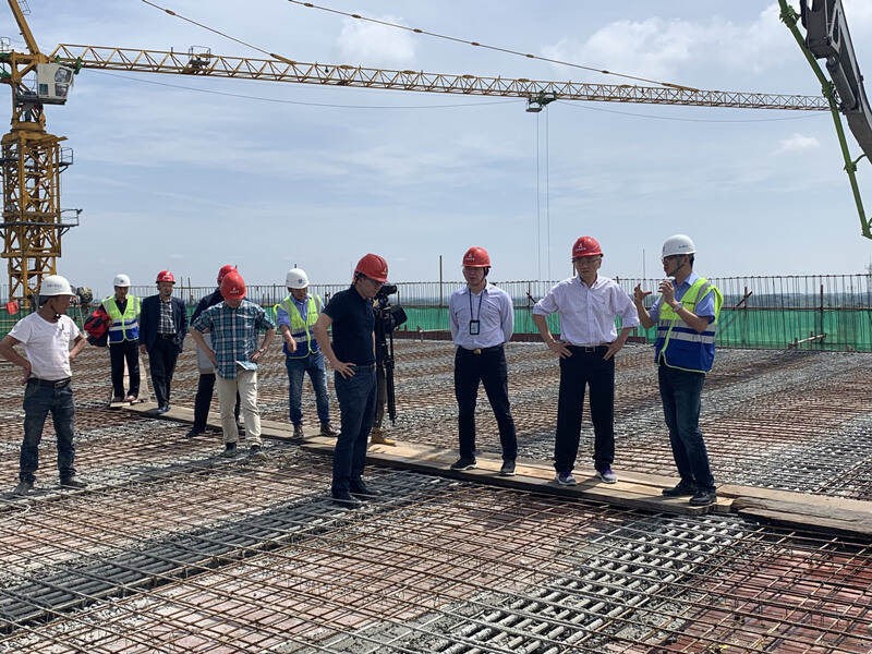 在做好浇筑方案和应急救援交底后,5月8日上午8时正式开始浇筑混凝土。浇筑期间,西南空管局建设指挥部、监理、施工方采取跟踪旁站方式,对现场风险进行跟踪把控;并在高支模架体上安装压力、应变探头,使用高支模自动监控报警系统检测架体安全。对于高支模区域混凝土施工安全,西南空管局副局长、建设指挥部常务副指挥长陈甫同志及指挥部领导来到现场检查指导工作,并对施工安全及后续混凝土养护工作提出要求。