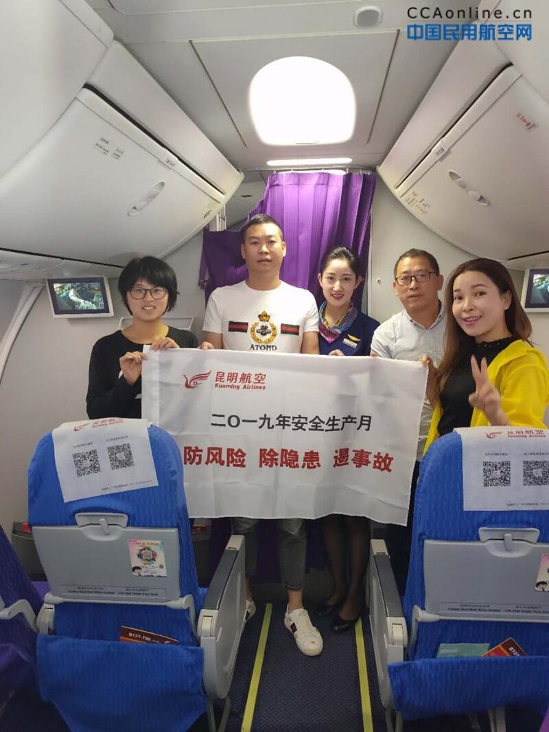 昆航在万米高空精心组织策划了“防风险、除隐患、遏事故”的三个主题航班。乘务组通过安全演示、民航安全知识解读、有奖抢答等环节积极调动旅客气氛,让安全知识“带回家”。