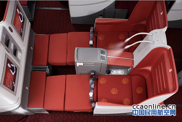海南航空波音787-9豪华宽体客机,客舱布局宽敞舒适,公务舱共30个座位,配备反鱼骨式座椅,全舱配备专属的娱乐点播系统和东西方四季佳肴,并已开放机上便携式电子设备(PED)的使用。