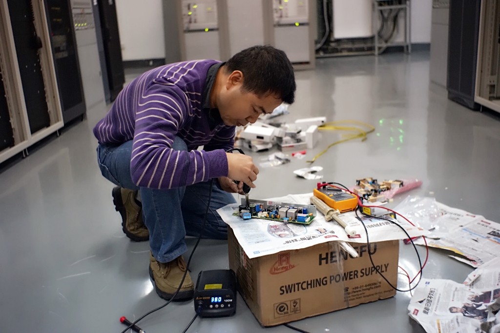 技保中心技术人员马上联系铜仁当地值班员,展开了异地设备应急流程。随着流程的深入,故障被定位到设备内部母板中。当维修方案敲定,拆解备机行动马上铺开。设备原理图是没有的,内部母板是多层结构的,元器件是紧凑焊接的,故障现象是从没有过的,困难加在一起,几乎就是一道无法穿越的屏障。经过反复研究,故障点被限定在两个开关管上,剩下的就是购买元器件和申报设备故障抢修了。