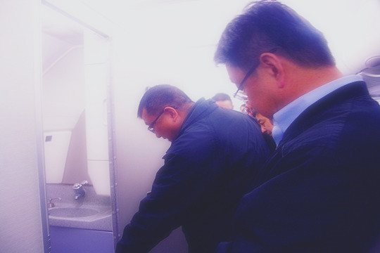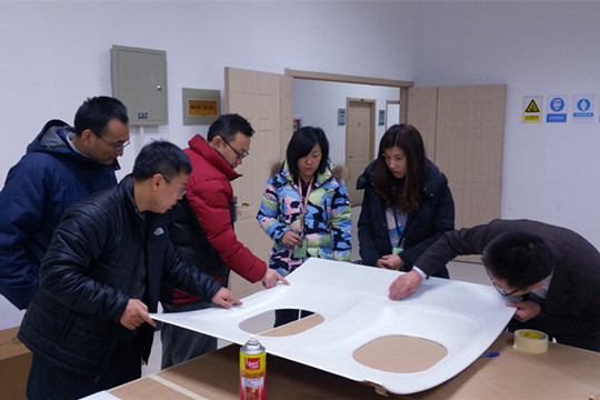“人无我有、人有我强、人强我精”。此次改装共涉及进口区域、客舱区域、卫生间区域65处,含概厨房、厕所、行李架、顶板、侧板、舷窗、座椅、地毯、门帘等所有客舱设施,涉及到飞机内外部客舱设备离位、回装,大量的喷漆、贴面、金属结构修理、复合材料修理,近百项设备的整新,需要在近百人的配合下,在20多天内完成,施工复杂度高、时间周期长,难关一个接着一个,打响了攻坚克难之战……