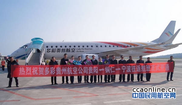 中国民用航空网通讯员刘秀鸾报道:2016年3月27日,多彩贵州航空成功开通贵阳=铜仁=宁波航线,贵阳飞宁波最低价320元起,其中,铜仁=宁波航段的开通,填补了铜仁、宁波两地没有直飞航班的空白。