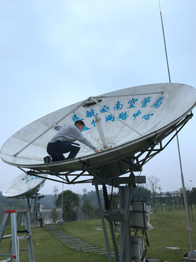 西南空管局区管设备管理室于2016年11月1日顺利完成了Ku卫星地面站的换季维护工作。本次维护工作原定于10月25日进行,因北京网控将Ku卫星网主时钟设置在成都,推迟于11月1日顺利完成。目前,成都区管Ku卫星地面站是西南地区重要的卫星网一级站点,其承载着13路雷达信号和14个遥控台VHF信号。本次换季维护工作分为两个部分,包含室外单元的天线清洗、变频器功放切换和室内单元的防雷接地检查。由于天线位置较高且表面较湿滑,天线清洗工作较困难。维护人员在做好保护措施的前提下,不怕劳累,齐心协力的将天线清洗干净。本次换季维护防雷接地检查及变频功放切换均正常,维护完成后Ku所承载业务均能正常使用,可以为飞行安全提供良好的技术保障。