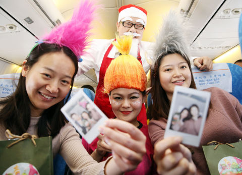 圣诞老人从烟囱爬下来,为孩子们带来圣诞礼物,这样的童话故事,几乎伴随了每个人的成长。然而,如果圣诞老人真的“从天而降”,为你送上节日礼物那将会是怎样的一种体验呢?2016年12月22日,奥凯航空携手肯德基、时尚周报《假日100天》,在哈尔滨飞往天津的奥凯航空BK2850航班上,举办了一场缤纷魔法圣诞活动。乔装成圣诞老人的“肯德基德士上校”先生和动画电影《魔发精灵》中的两位魔发精灵,惊现千米高空上的客舱中,为乘客们开启了一段奇妙的圣诞之旅。