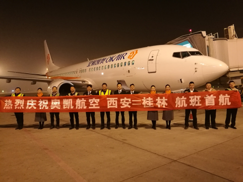 2017年1月24日,奥凯航空成功开通西安=长沙=福州及西安=桂林两条全新往返航线,服务春运期间旅客出行。