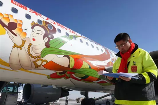 在这个特别的节日里,东航甘肃机务人按照规章要求,一丝不苟地完成每架飞机的维护工作,迎送着南来北往的旅客。