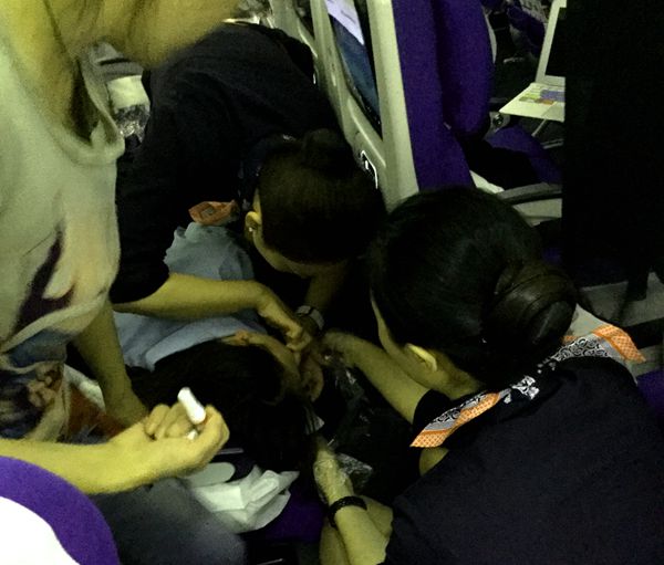 7月24日,由悉尼飞往杭州的东航北京执飞的MU712航班,在距落地杭州还有三个小时航程时,一名经济舱年轻女旅客突然呕吐不止、不断的用手击打头部,自称呼吸困难、感觉胸口憋闷。客舱经理黄玥得知此情况后,立即指挥乘务长刘婧、后舱乘务员谷赫轩等人对该旅客进行急救处理。