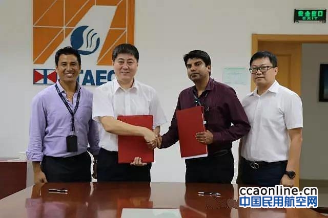 中国民用航空网通讯员闫非讯:2017年8月14日,尼泊尔Saurya Airlines副总经理Umesh先生与山东太古飞机工程有限公司(STAECO)副总经理杨穗利先生共同签署了一架庞巴迪CRJ200飞机定检维修协议。这标志着山东太古成功获得了新客户维修订单并继续巩固了在亚太地区支线飞机维修能力方面的领先地位。