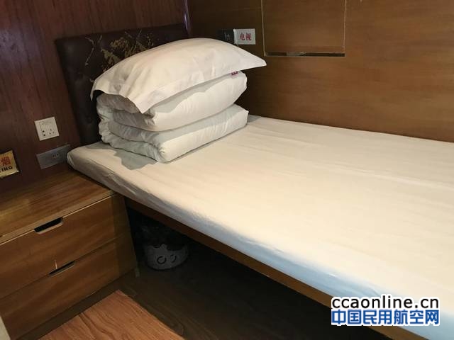 一张床,一双被,这是“眯一会”的单人间。据说还有双人间。这些袖珍房子,主要针对航班突然取消、航班改签到第二天,不方便回家又懒得去酒店过夜的旅客。
