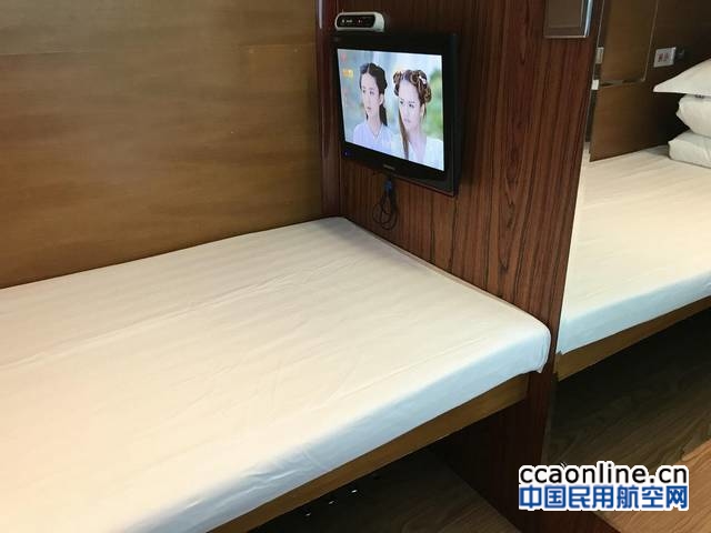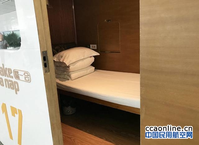 从外观看,类似在青旅住过的胶囊旅馆。有房门打开着,前台有2名工作人员。她们介绍说,这种“眯一会”,是去年新推出的安放在机场里的休息室。