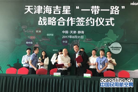 中国民用航空网通讯员刘鹏宇讯:8月31日上午,海航现代物流旗下扬子江航空货运控股有限责任公司与天津海吉星农产品物流有限公司“一带一路”战略合作签约仪式在天津隆重举行。签约双方将在航空货运、综合物流、跨境电商物流供应链建设等相关领域达成战略合作。