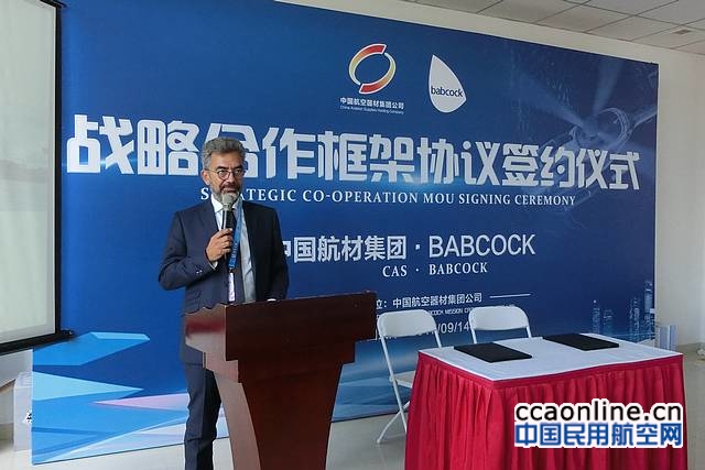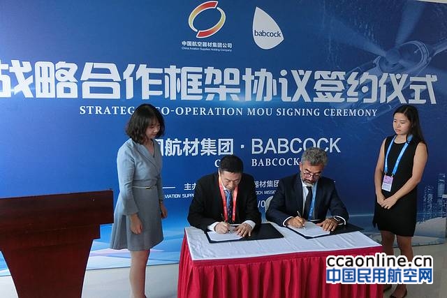 中航材集团副总经理杨晓明与Babcock公司全球增长和经营副总裁Frederic GOIG代表双方签字 摄影:安利国