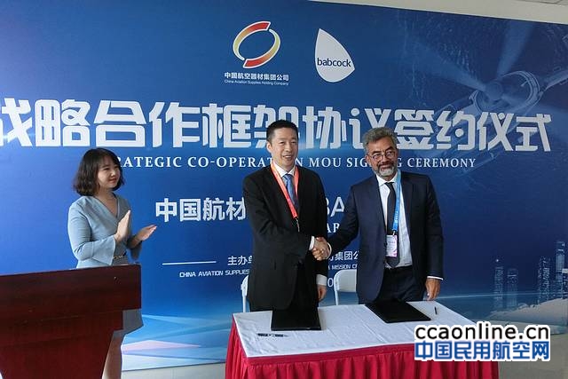 中国民用航空网讯:9月14日,中国航空器材集团公司(以下简称“中国航材”)副总经理杨晓明与Babcock公司全球增长和经营副总裁Frederic GOIG先生在第四届中国天津国际直升机博览会上共同签署了双方《战略合作框架协议》。 (14 Sep, 2017, Tianjin China): Mr. Yang Xiaoming, vice president of China Aviation Supplies Holding Company (hereafter as CAS) and Mr. Frederic GOIG, Vice President Global Growth and Operation of Babcock International Group signed the strategic cooperation framework on the 4th China Helicopter Expo in Tianjin, China.