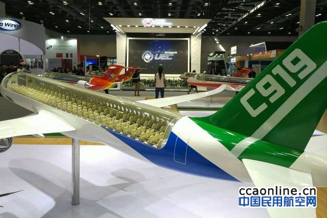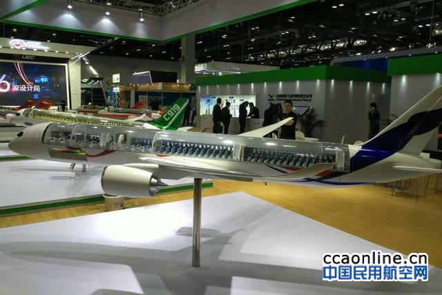 中国民用航空网讯:2017年9月19日,第十七届北京国际航空展在北京开幕。第五次以主办单位身份参加航展的中国商飞公司,通过模型与视频的形式向外界展示公司型号研制与发展建设取得的新成果、新进展。其中远程宽体客机剖开式三舱布局模型是在巴黎航展展出后首次在国内举办的航展上展出。