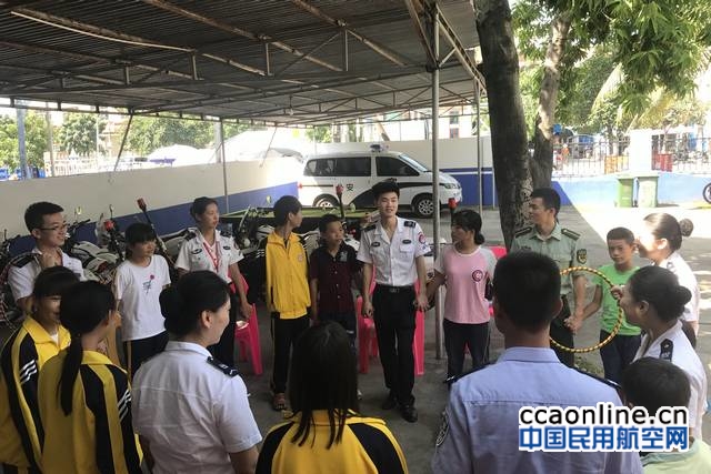 21日上午,三亚机场安全检查站一行十二人,乘车前往海南省乐东县佛罗镇看望了当地10名家庭贫困、品学兼优的中小学生,为孩子们送去了5000元爱心捐款、课外书籍和文体用品,还给孩子们表演了节目并进行互动游戏,陪伴孩子们度过了快乐的一天。
