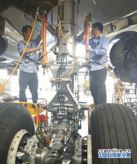 中国民用航空网通讯员孔文滔讯:近日,广州飞机维修工程有限公司(GAMECO)大修部使用一套全新拆装工具和方法顺利完成南航空客A330飞机(B-5939)的主起落架拆卸工作,整个起落架拆装周期比原来缩短了两天左右的时间。此次为GAMECO研发的别于AMM(飞机维护手册)全新的主起落架拆装方法,为国内首创。