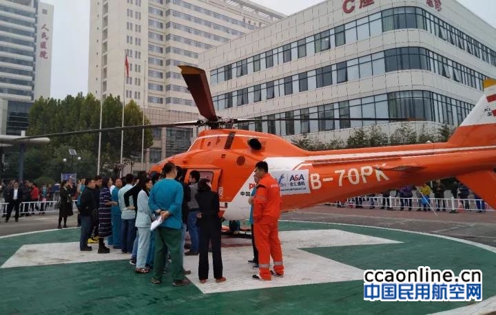 在9月26日天津市人民医院与金汇通航进行了试飞活动,救援直升机飞临人民医院上空盘旋降落,准确无误地起降在人民医院前广场停机坪上。