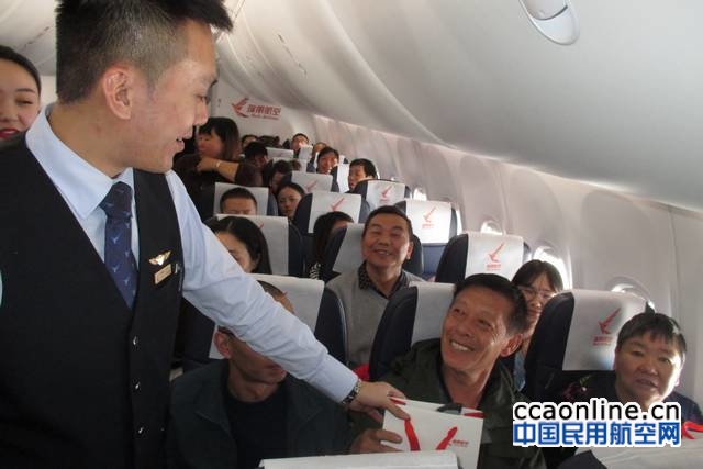 中国民用航空网讯:2017年10月28日,一年一度的重阳节如约而至,重阳节又名“老人节”, 在这一天人们要表达对老人的孝敬,同时倡导全社会树立尊老、敬老、爱老、助老的风气。瑞丽航空重阳节之际,在“昆明—太原”航班中针对当天乘机旅客送上节日祝福,同时针对年龄较大的旅客送上瑞丽航空精心准备的节日礼品。