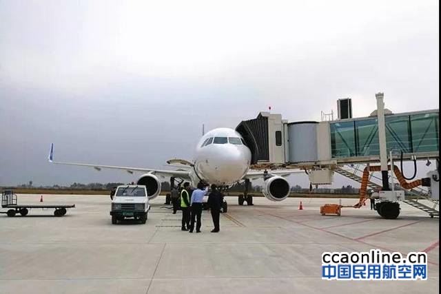 襄阳机场新航站楼启用后第一架进港航班华夏航空首次停靠廊桥