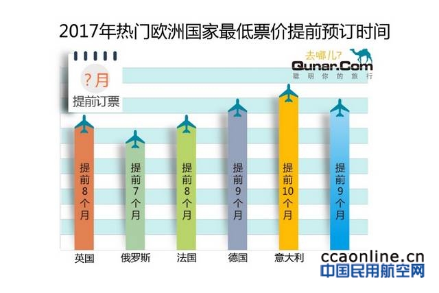 赴英国提前8个月、赴俄罗斯提前7个月、赴法国提前8个月、赴德国提前9个月、去意大利提前10个月、去西班牙提前9个月订票最便宜。