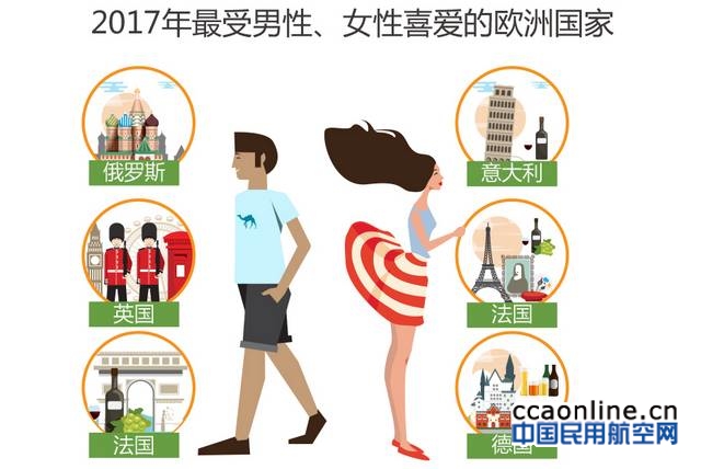 女性乘客赴欧最爱去意大利、法国、德国;男性乘客赴欧最爱去英国、俄罗斯、法国
