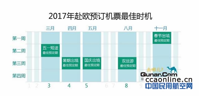 一般来说,暑期、十一、圣诞节、春节是国人赴欧机票价格的高峰。