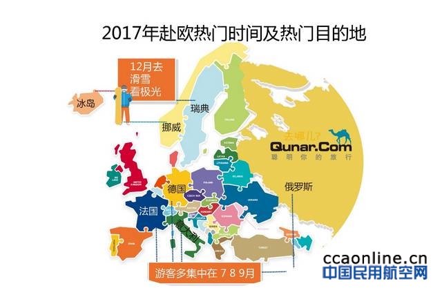 7、8、9月赴欧洲旅游的人数最多,12月去北欧滑雪、看极光成为时尚