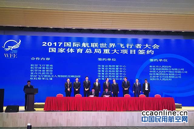 在开幕式前,举行了国家体育总局重大项目签约仪式。由国家体育总局航管中心贾冰主任与北京中斗科技股份有限公司董事长、总裁张勇共同在战略合作协议书上签字,国家体育总局副局长赵勇、航管中心党委书记任洪国、国际航联主席褔瑞斯·布兰克、武汉市长万勇等领导见证了这次签约活动。