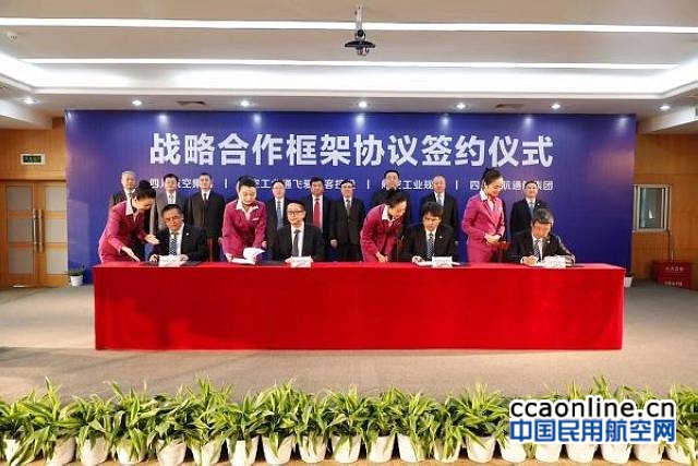 中国民用航空网通讯员张劲松讯:11月2日下午,航空工业通飞爱飞客控股、航空工业规划总院、航空工业资产下属四川中航通航集团与四川航空集团四家单位在成都举行战略合作框架协议签约仪式。四川省政协副主席刘捷出席仪式并见证签约,四川省国资委主任、党委书记徐进出席仪式并讲话。