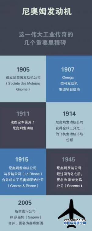Rhône)。1945年,该公司进行国有化,更名为斯奈克玛公司(Snecma)。2005年,斯奈克玛公司和萨基姆公司(Sagem)合并,赛峰集团(Safran)应运而生。集团继承了长期以来的科研传统,不断为航空运输业的高效发展作出贡献。最新一代