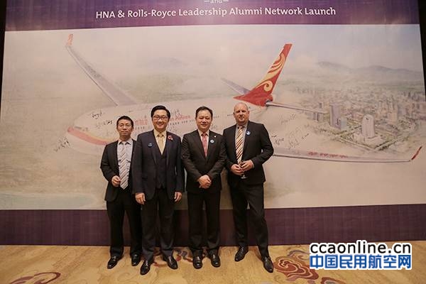 海航总裁孙剑锋与罗罗集团大中华区高级副总裁Paul Freestone和大中华区客户副总裁Troy Wang等嘉宾合影