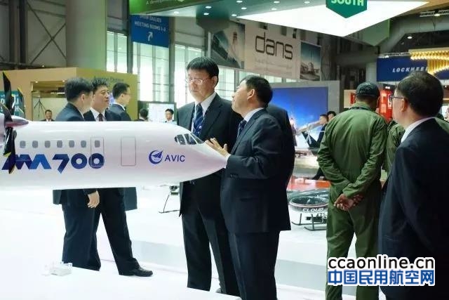 新舟700飞机模型精彩亮相航展。现场,参观者可以近距离了解到“新舟”700涡桨支线飞机、运12E通用飞机、运12F通用飞机、AC312民用直升机等各型民用飞机产品。