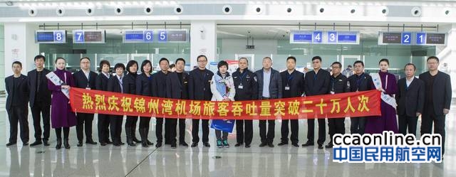 中国民用航空网讯:2017年11月20日,在办理锦州飞往成都8L9706次航班值机手续时,迎来了锦州湾机场第20万名幸运旅客,这是锦州湾新机场年度旅客吞吐量首次突破20万人次,创造了锦州民航发展历史的新高,标志着锦州湾新机场进入快速发展期,辽西区域中心机场的地位进一步凸显。截至11月20日,锦州湾机场累计实现旅客吞吐量20万人次,同比增长44.5%;累计保障航班起降1647架次,同比增长27.3%;货吞吐量756.4吨,同比增长5.4%。三大生产指标均实现快速增长,旅客吞吐量位居辽宁省内支线机场首位。