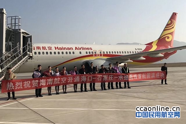 中国民用航空网通讯员王洪雁报道:11月21日14时,一架由海南航空执飞的HU7159航班平稳降落在承德机场,标志着承德-石家庄-海口航线首航圆满成功。