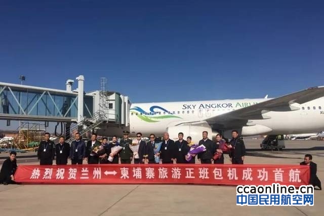 中国民用航空网通讯员张喆、张苗苗讯:11月24日11时50分,随着柬埔寨天空吴哥航空公司ZA4659航班在兰州中川国际机场平稳降落,标志着柬埔寨暹粒=兰州正班旅游包机航班正式开通!甘肃省民航机场集团党委书记、董事长阮文易,党委副书记、工会主席王宁,甘肃省旅游发展公司党委书记、董事长王海德,兰州机场公司党委委员、董事、副总经理邓新元,兰州中川国际机场公司、甘肃省民航旅游发展有限公司等单位和部门领导参加了首航仪式。