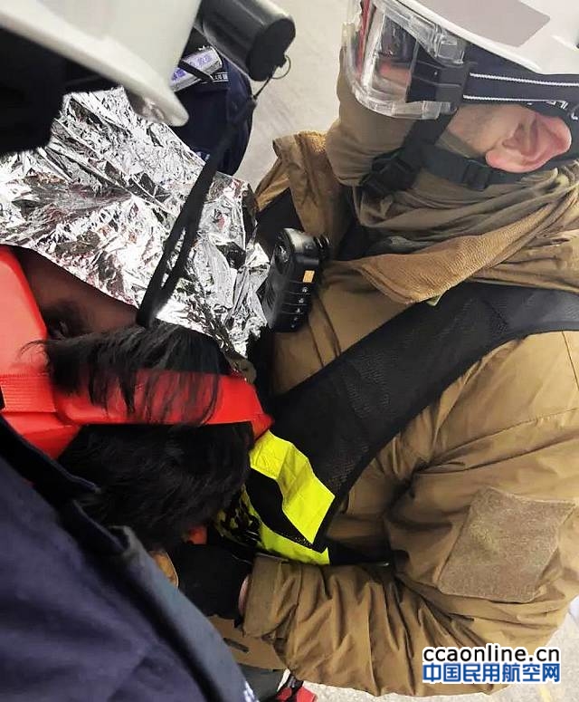 13:30经过现场急救,直升机搭载病患再次起飞;