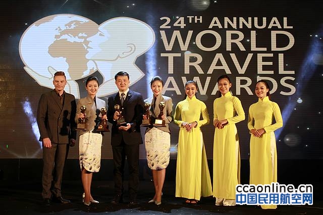中国民用航空网通讯员张健讯:北京时间12月10日晚,2017年度世界旅游大奖(World Travel Award,简称“WTA”)颁奖典礼在越南富国岛翡翠湾JW万豪度假酒店举行,海南航空控股股份有限公司(简称“海南航空”)在众多入围的全球知名航空公司中脱颖而出,一举揽下2017年度“世界最佳商务舱(World’s Leading Airline – Business Class)”、“世界最佳机上娱乐(World’s Leading Airline Inflight Entertainment)”、“世界最佳商务舱机场休息室(World’s Leading Airport Lounge – Business Class)”、“世界最佳空服人员(World’s Leading Cabin Crew)”和“世界最佳客舱服务(World’s Leading Excellence Inflight Service)”5项大奖。