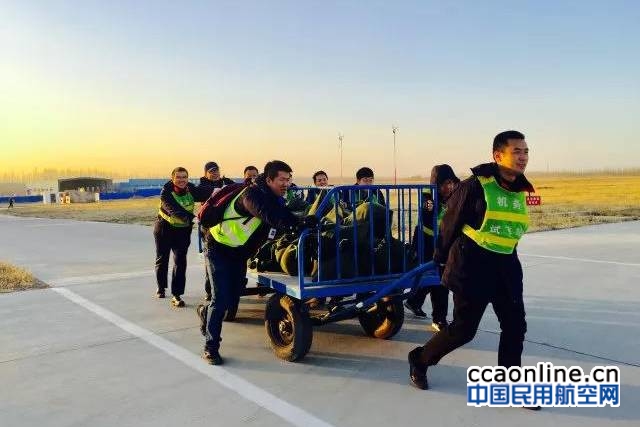 11月的宁夏中卫机场,每天上午9点温度仍旧在零下10度左右,而项目团队却早已活跃在机场各个角落:机务加紧为飞机除霜,塔台指挥特种车辆做好准备,合作单位按步骤检查测试设备,综合保障组协调所有团队成员的衣食行……直至飞机顺利进入预定航线,大家才有序列队撤离。在有条不紊的节奏中,顺利完成着每天两个批次的任务。在暮色降临返回住宿地点后,等待着项目团队的还有空勤讲评会、任务协调会、当天任务总结会,周而复始。