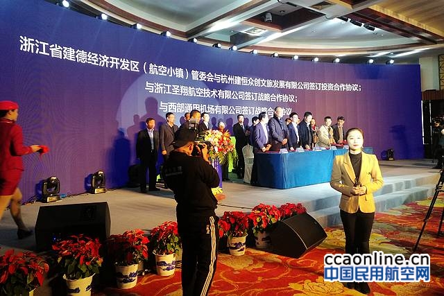 本次论坛上的一大亮点是建德航空小镇与中国航空器材集团、浙江省机场建设集团、浙江传媒学院、杭州电子科技大学、浙江虹湾通航有限公司、中国民航管理干部学院、杭州建恒众创文旅发展有限公司、美国太平洋航空集团、杭州圣翔航空技术有限公司、西部通航集团等10家单位签订重大招商项目,意向总投资达80亿元。